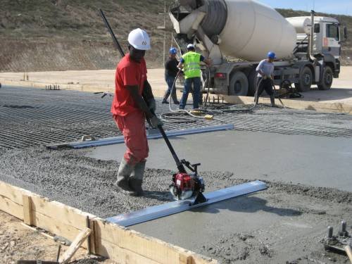 Plovoucí vibrační lišta pro povrchové zvibrování a srovnání řídké betonové směsi
